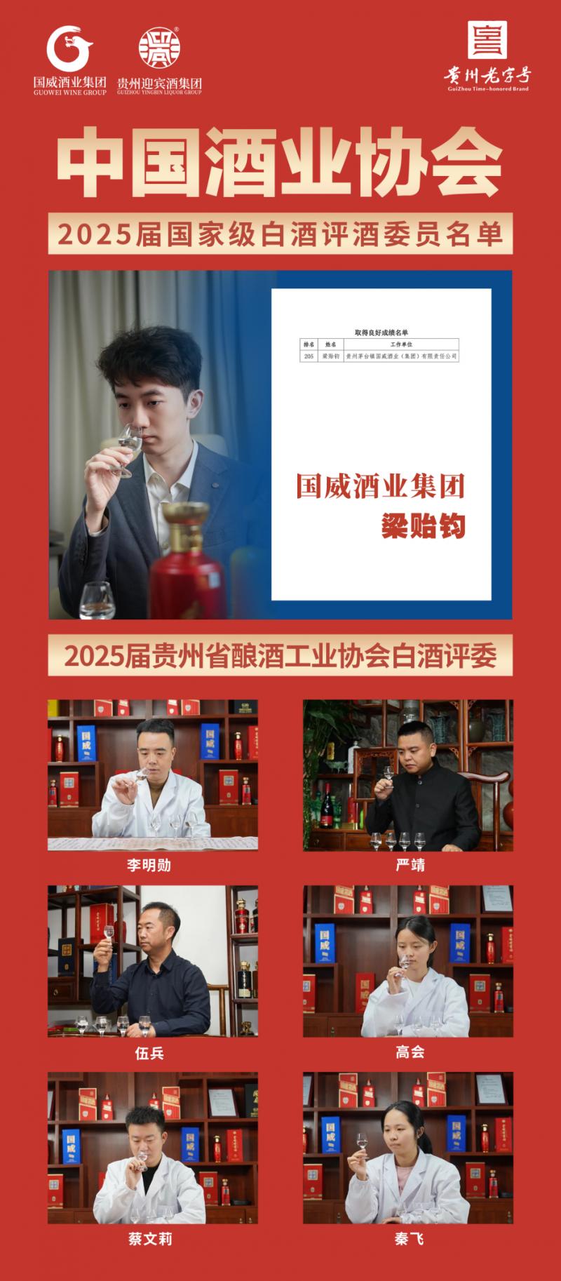 近日,中国酒业协会正式下发《关于聘任中国酒业协会2025届国家级白酒评酒委员的通知》(中酒协〔2025〕33号),公布了新一届国家级白酒评酒委员聘任名单。来自贵州迎宾酒业的青年品酒师梁贻钧凭借精湛的品评技艺与扎实的专业功底成功入选,作为2000年出生的00后,他不仅成为首个获聘国家级白酒评酒委员的00后,刷新了行业最年轻国家级评委的纪录,其背后所承载的第三代“正脉茅香”传承人身份,更让这份荣誉增添了一份厚重的技艺传承色彩。