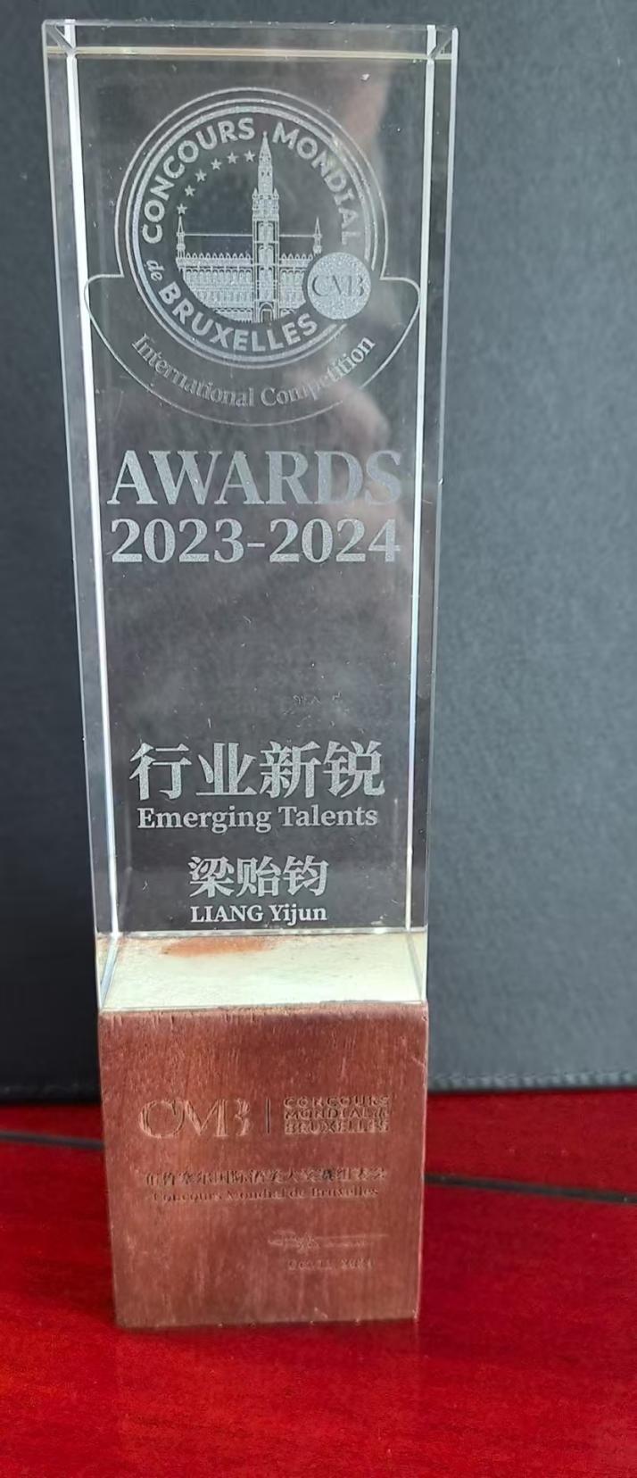 梁贻钧2023-2024年度被布鲁塞尔国际酒类大奖赛组委会授予“行业新锐”荣誉称号